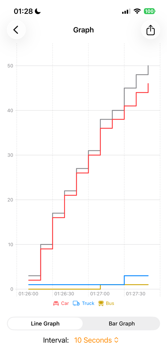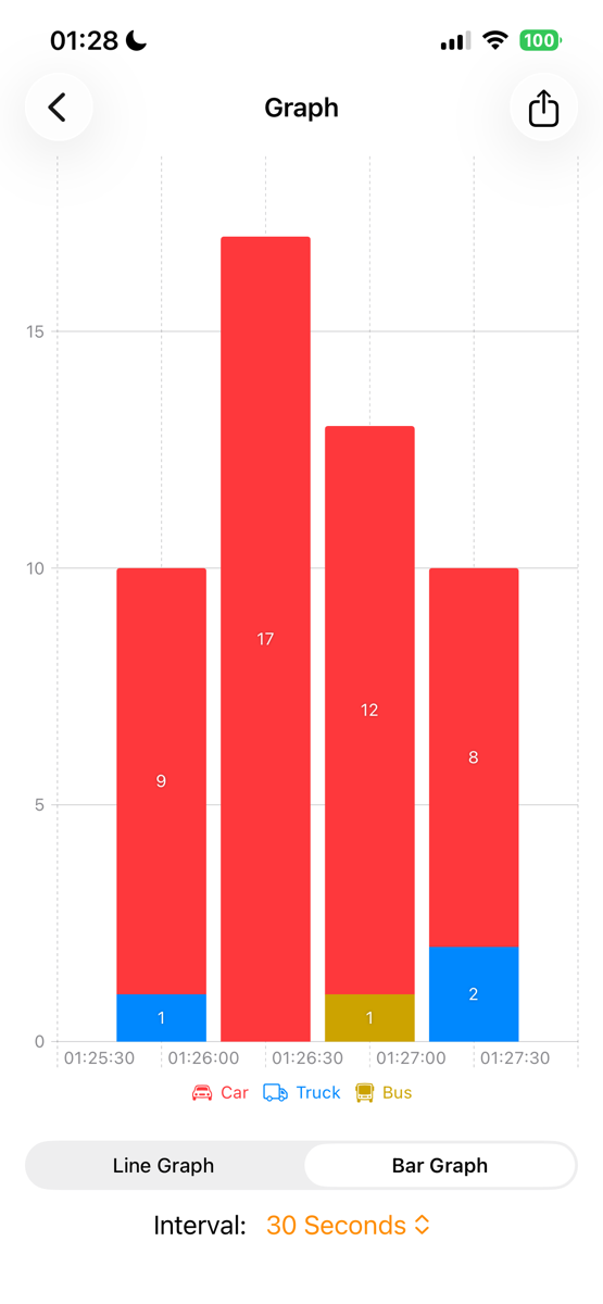 Click on **Show Graph** to view a timeline or bar chart that illustrates the counts for each vehicle type and for people.